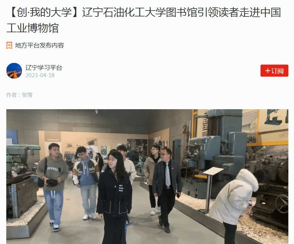 编者按:近日,学习强国辽宁学习平台、人民日报客户端·人民号、辽宁日报·北国号等媒体平台对我校图书馆引领读者走进中国工业博物馆进行了宣传报道。现将相关报道转载如下: