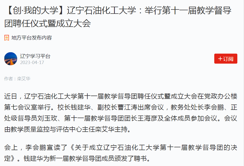 编者按:近日,学习强国辽宁学习平台、人民日报客户端·人民号、辽宁日报·北国号等媒体平台对我校举行第十一届教学督导团聘任仪式暨成立大会进行了宣传报道。现将相关报道转载如下: