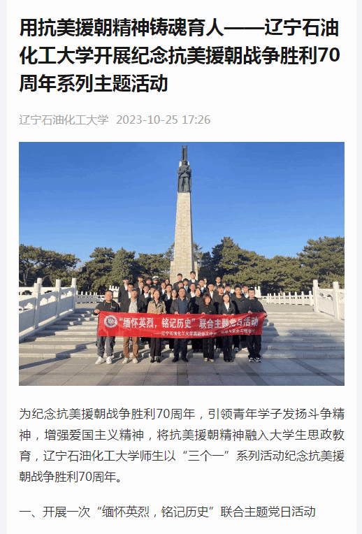 辽宁日报·辽望号:用抗美援朝精神铸魂育人——国产亚洲综合一区二区三区_亚洲欧美日韩中文天堂_尤物在线观看视频不卡无码_国产最新精品亚洲2025不卡_亚洲成Av人在线观看片水蜜桃开展纪念抗美援朝战争胜利70周年系列主题活动