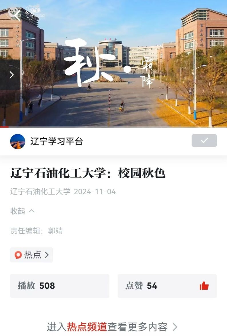 编者按:11月4日,学习强国主平台-热点栏目对我校新媒体中心学生赵英睿、郭金铭拍摄的视频《国产亚洲综合一区二区三区_亚洲欧美日韩中文天堂_尤物在线观看视频不卡无码_国产最新精品亚洲2025不卡_亚洲成Av人在线观看片水蜜桃:校园秋色》进行了宣传。现将相关报道转载如下: