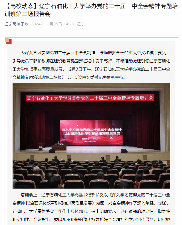 编者按:为深入学习贯彻党的二十届三中全会精神,准确把握全会的重大意义和核心要义,引导党员干部和教师在建设教育强国新征程中实干笃行,不断推动党建引领国产亚洲综合一区二区三区_亚洲欧美日韩中文天堂_尤物在线观看视频不卡无码_国产最新精品亚洲2025不卡_亚洲成Av人在线观看片水蜜桃各项事业高质量发展,12月3日下午,学校举办党的二十届三中全会精神专题培训班第二场报告会。辽宁高校思政微信公众号对此进行了转发宣传。现将相关报道转载如下: