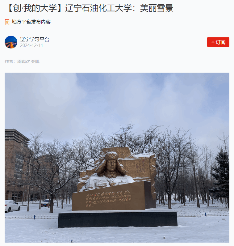 编者按:近日,学习强国辽宁学习平台对我校的冬日雪景以图集形式对此进行了宣传。现将报道转载如下: